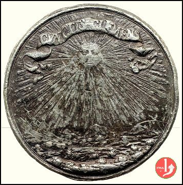 sul taglio spalla: • HAMERANVS • F • la colomba dello Spirirto Santo raggiante su paesaggio montuoso con tre cime e a dx stella in esergo: VT • SINT | |