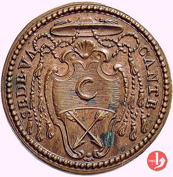 Verso: Stemma del Card. Albani sormontato da galero a sei nodi, chiavi decussate e padiglione