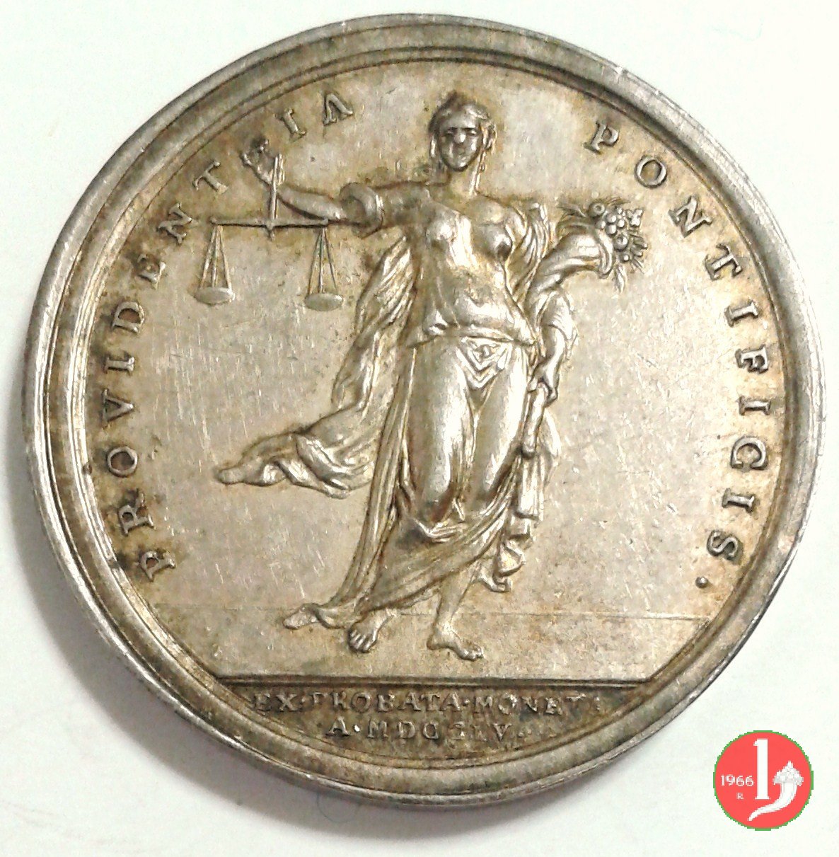 Premio Ufficiali della Zecca -P85 Dritto: BENED • XIV • _ PONT • M • A • XVI Busto con mozzetta e stola a dx sotto: O • H • La figura allegorica della provvidenza in piedi di fronte regge bilancia e cornucopia in esergo: EX • PROBATA • MONETA = A • MDCCLV • | |