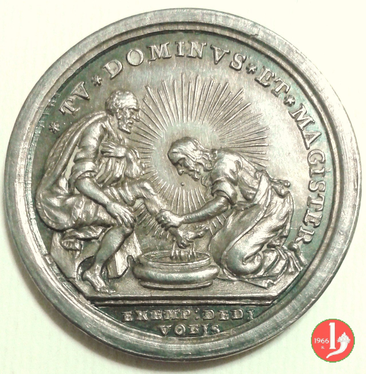 Lavanda dei piedi A. XII -P58 Dritto: PIVS • SEXTVS _ PONT • MAX • A • XII • busto a dx con berretto, mozzetta e stola Gesú lava i piedi a S. Pietro in esergo: EXEMPL • DEDI = VOBIS • |