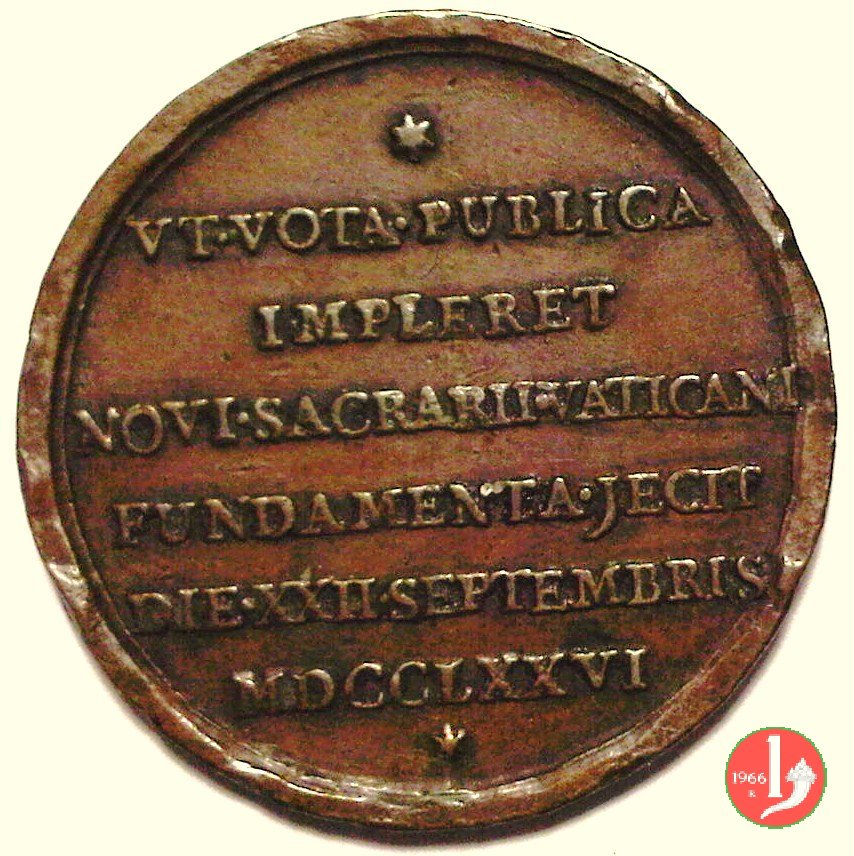 Verso: * = VOTA • PUBLICA = IMPLERET = NOVI • SACRARII • VATICANI = FVNDAMENTA • JECIT = DIE • XXII • SEPTEMBRIS = MDCCLXXVI = *