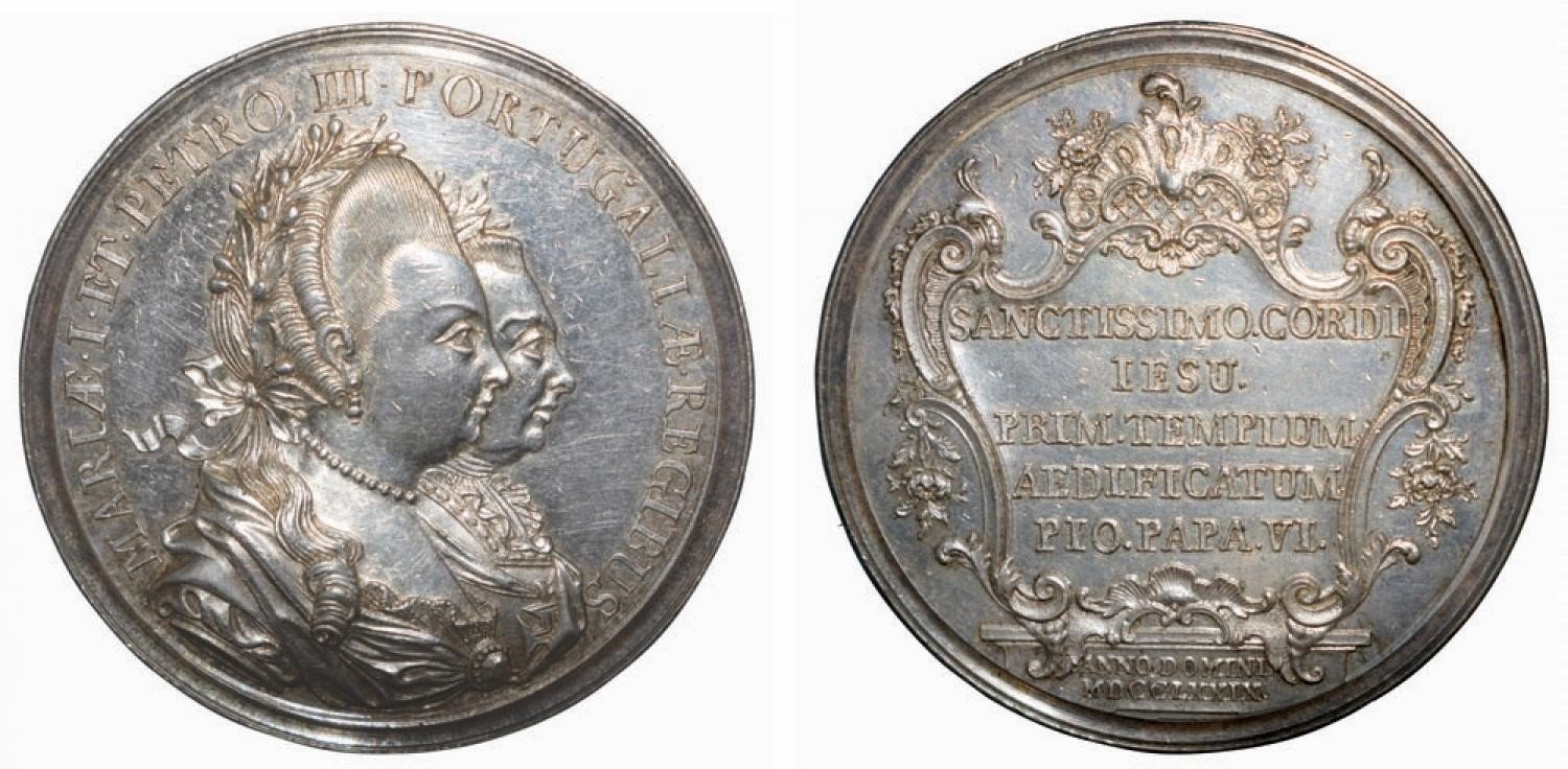 Il Sacr. Cuore di Gesú a Lisbona d46-P32 Dritto: MARIAE • I • ET • PETRO • III • PORTUGALIAE • REGIBUS bustiaccollati a dx dei Sovrani Portoghesi in esergo: ANNO DOMINI = MDCCLXXIX • |
