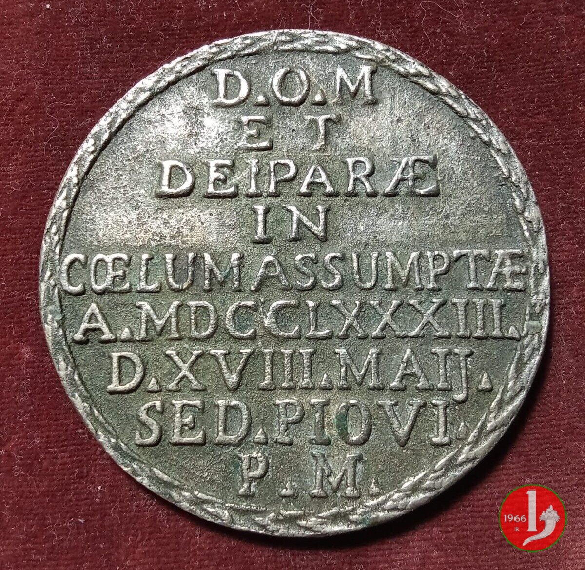 Verso: nel campo: D • O • M • = ET = DEIPARAE = COELUM ASSUMPTAE = A • MDCCLXXXIII • = D • XVIII • MAIJ • = SED • PIO VI • = P • M •