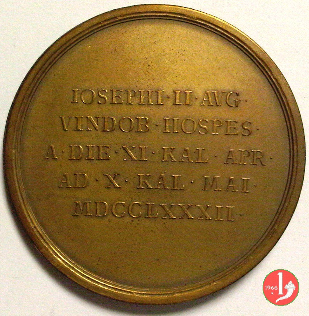 Viaggio a Vienna Ioseph II Dritto: GIAN • ANGELO • BRASCHI • PIUS VI • MDCCLXXXII • busto a sx con triregno e piviale tra ramo di palma e chiavi decussate busto laureato a dx |