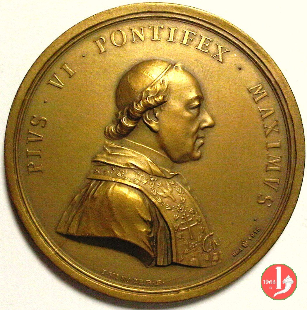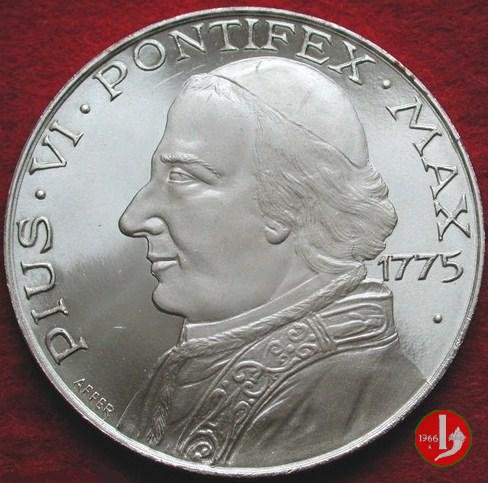 Il Papa ad Augusta (A.VI) Dritto: PIVS * SEXTVS * _ * PONT * MAX * AN * VI * busto a dx con berretto, mozzetta e stola interno della basilica di S. Pietro con il Papa in trono in esergo | |