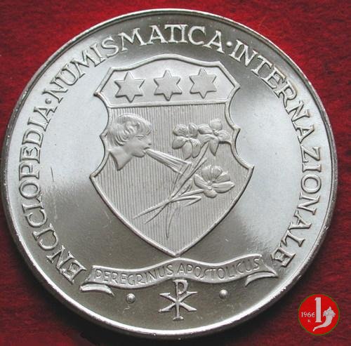 Enciclopedia Numismatica Internazionale Dritto: PIUS • VI • PONTIFEX • MAX busto a sx con berretto, mozzetta e stola nel campo a dx: 1775 in basso a sx: AFFER Stemma e nastro svolazzante iscritto: PEREGRINUS APOSTOLICUS sotto: monogramma di Cristo PX. | |