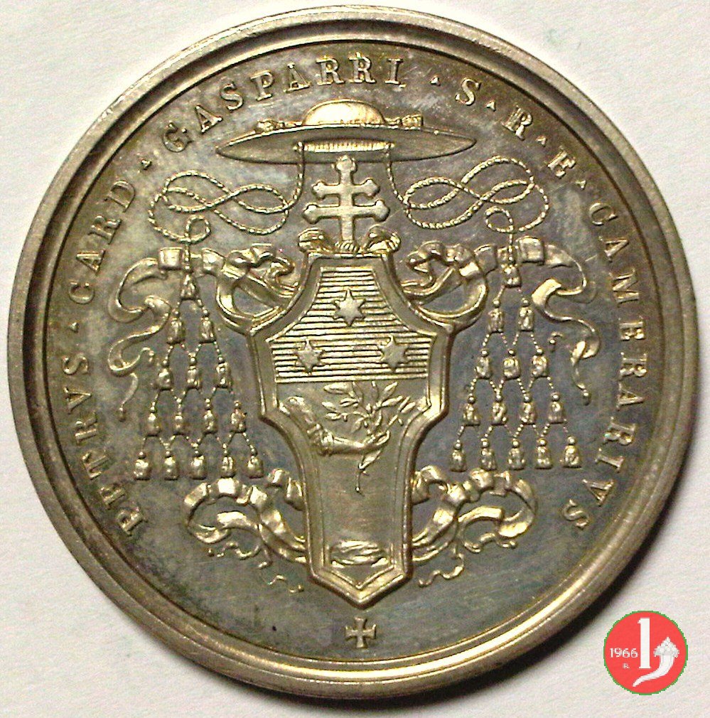 sotto: MISTRUZZI Stemma del Card. Gasparri tra nastri, sormontato da galero a 15 nodi e da tripla Croce in basso: ✠ | |