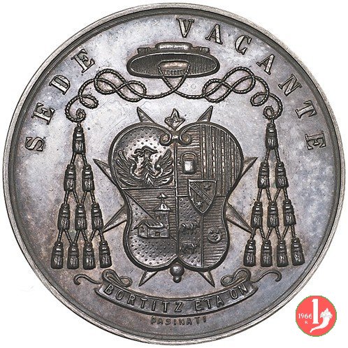 Prefetto Mons. De Samper -Bo115 Dritto: SEDE VACANTE = MDCCCCXXII stemma di Mons. De Samper sormontato da galero a 10 nodi, sopra a Croce di Malta e su nastro con il motto: BORTITZ ETA ON sotto: PASINATI | |