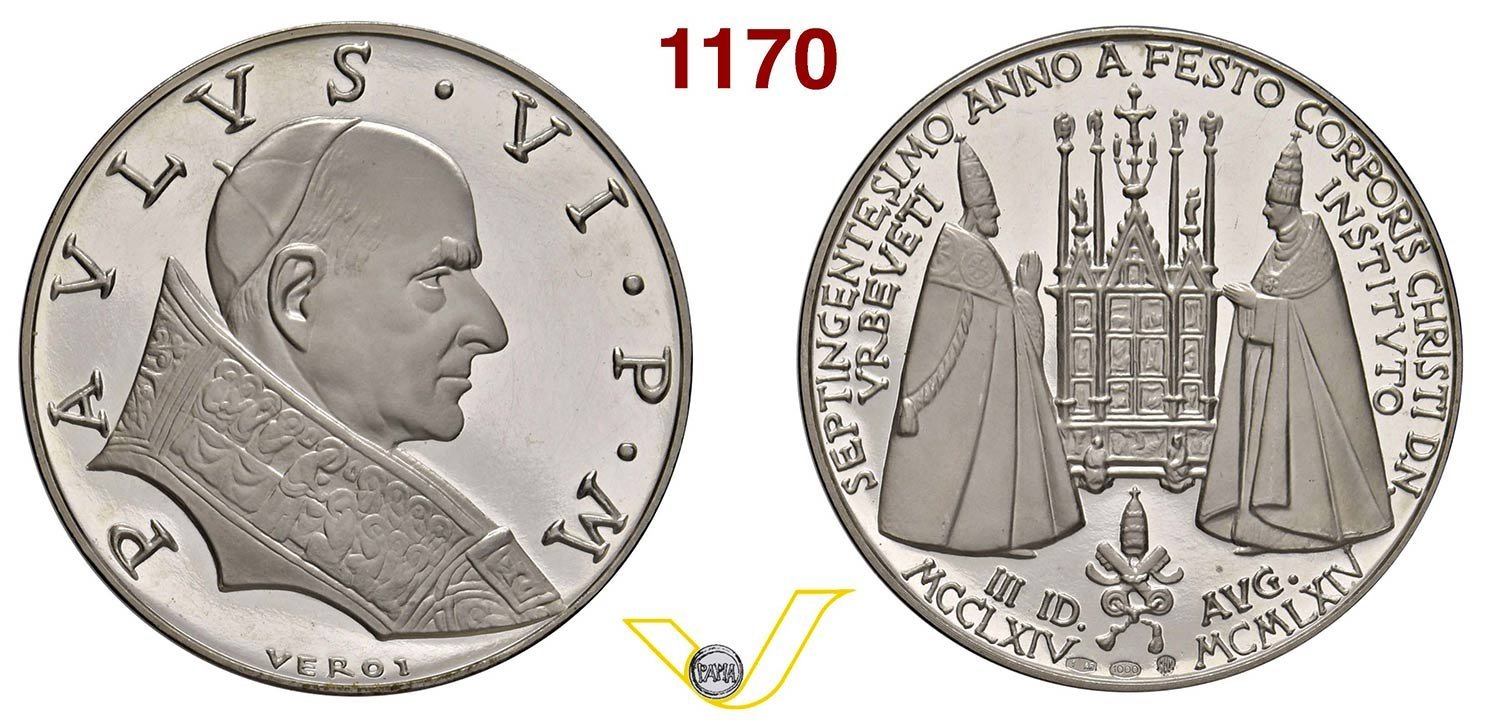 Dritto: _ • PAVLVS VI • VRBANVS IV • ANNO DCC A BVLLA "TRANSITVRVS" EDITA •