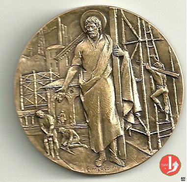 Verso: N.S. Gesú in piedi nimbato di fronte, sullo sfondo cantieri e vari operai al lavoro