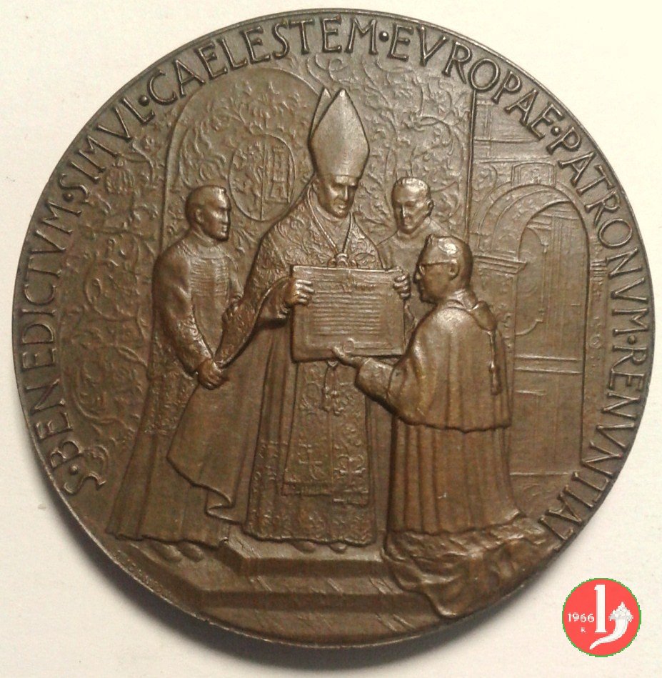 Verso: S. BENEDICTVM • SIMVL • CAELESTEM • EVROPAE • PATRONVM • RENVNTIAT •