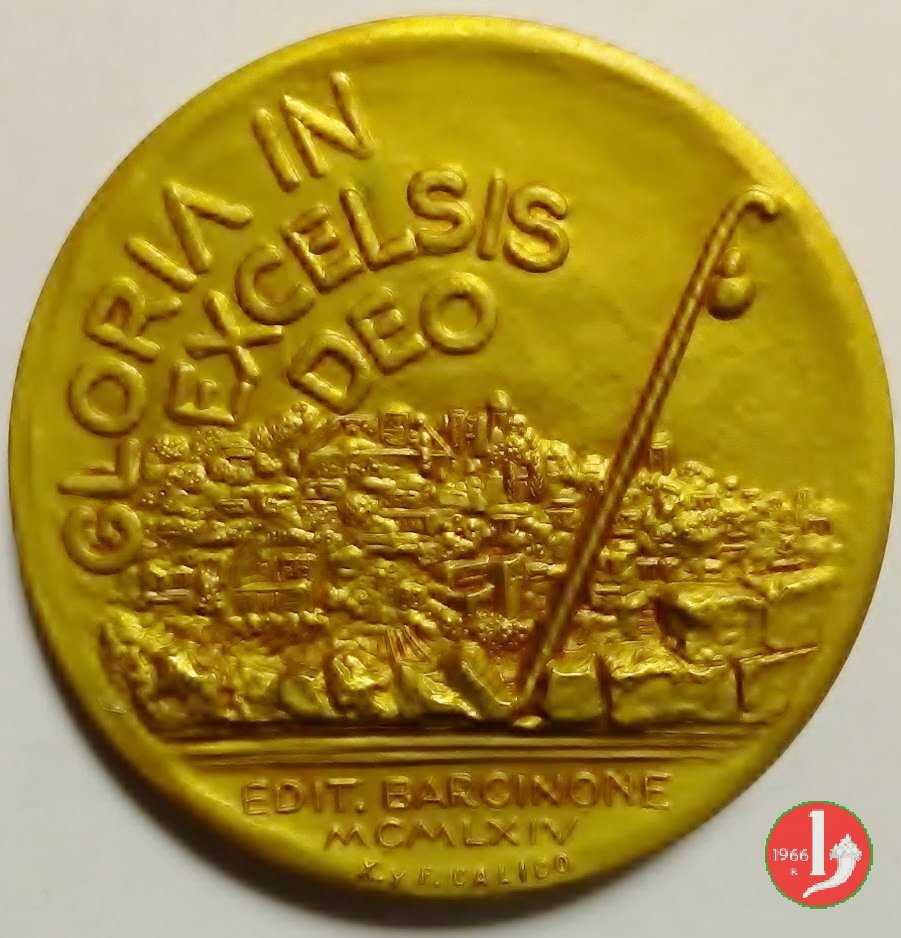 sotto, ai lati di triregno su chiavi decussate: III ID. _ AVG. = MCCLXIV _ MCMLIV