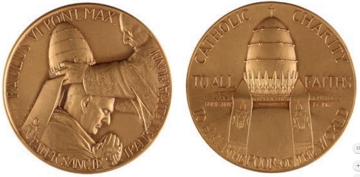 Verso: PAVLVS VI PONT • MAX • EXTENDENS MANUM APPREHENDIT EVM