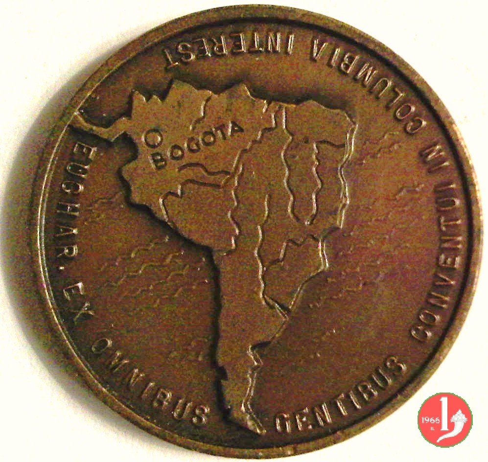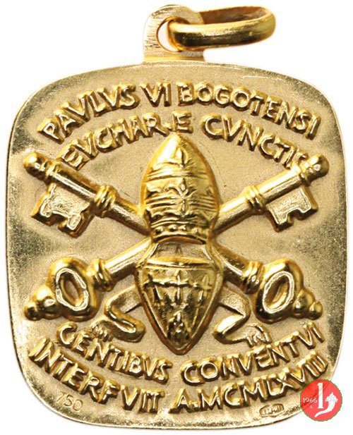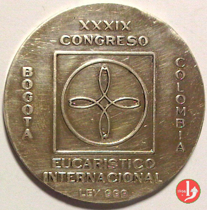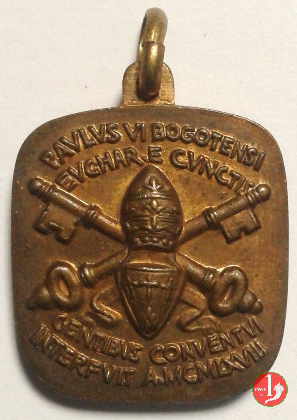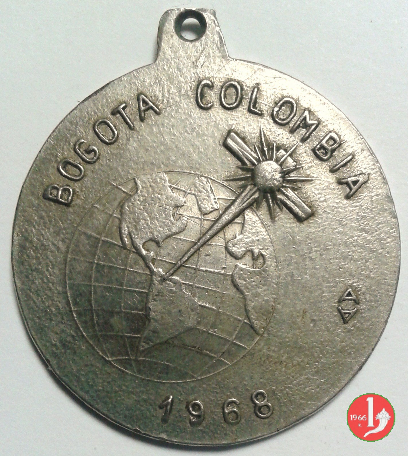 Congresso Eucaristico Internazionale di Bogotà Dritto: PAULUS VI PONT. _ MAXIMUS busto a sx con berretto, mozzetta e stola sotto: AFFER Planimetria del Sud America con evidenziata la Colombia e indicata BOGOTA | |