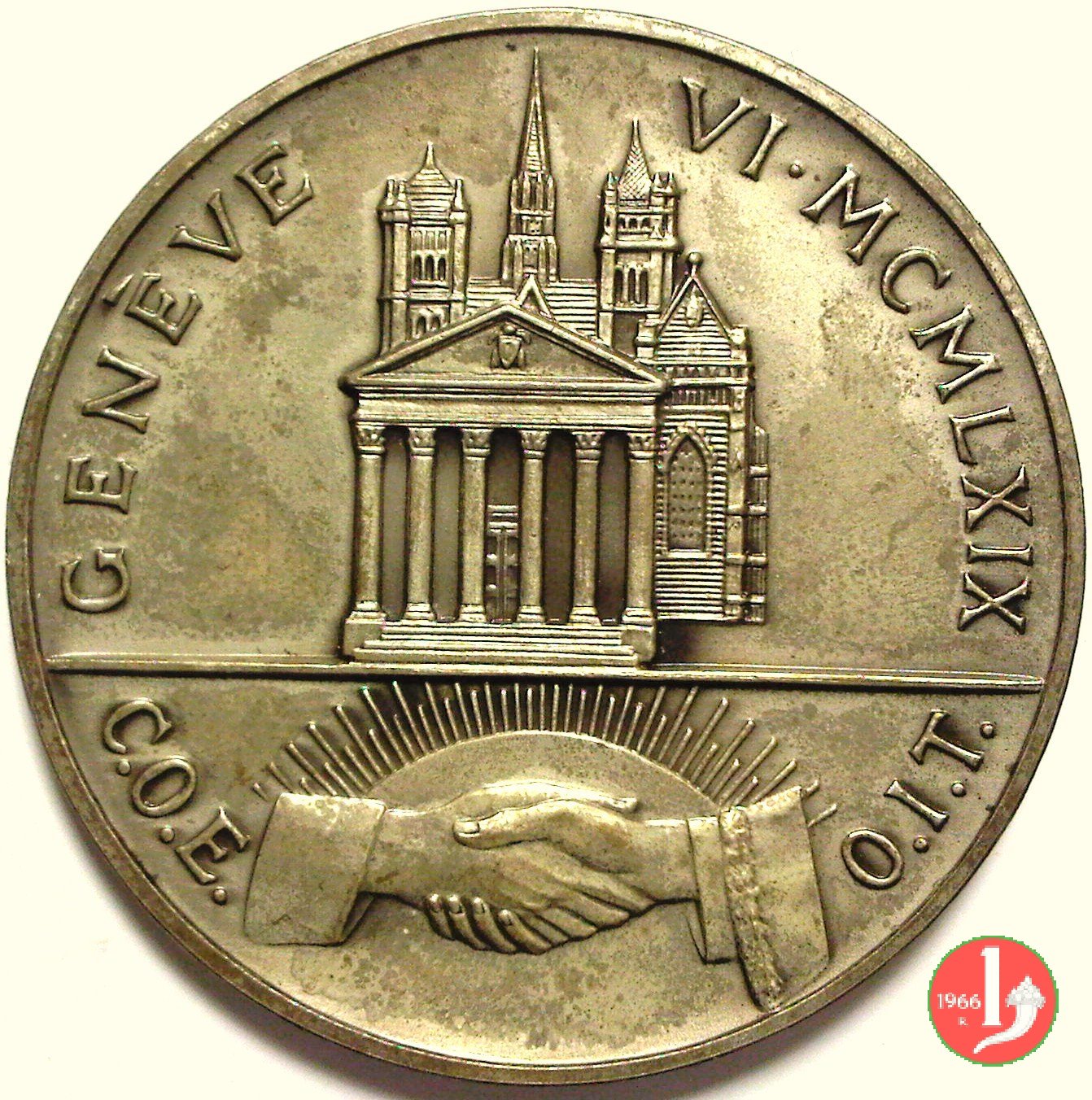 Viaggio a Ginevra COE - OIT 40mm Dritto: PAVLVS VI • PONTIFEX MAX • busto di 3/4 a dx con zucchetto, mozzetta e stola ramo d'ulivo tra caduceo, vanga, ciminiere fumanti, vasi, ruota dentata martello, compasso e libro aperto sotto: GENEVE • • 1969 | |