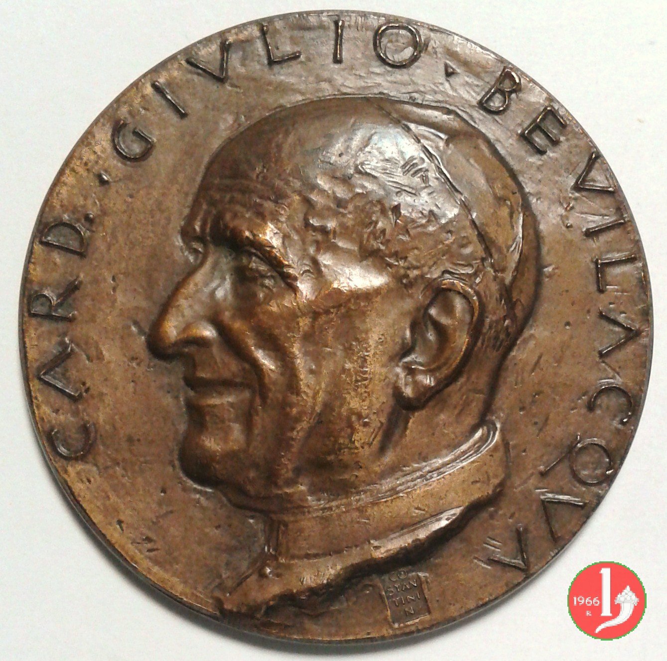 Visita all'Isola della Scala 21-03-1969 -MM252 Dritto: CARD. • GIULIO • BEVILACQUA Busto del Cardinale a sx con berretto e veste talare sotto, entro rettangolo: CO = STAN = TINI = • N • Stemma Papale su chiavi decussate, coronato da triregno ai lati: ROMA _ 21 • 24 = III = 19 _ 69 in basso, a dx: S.J. | |