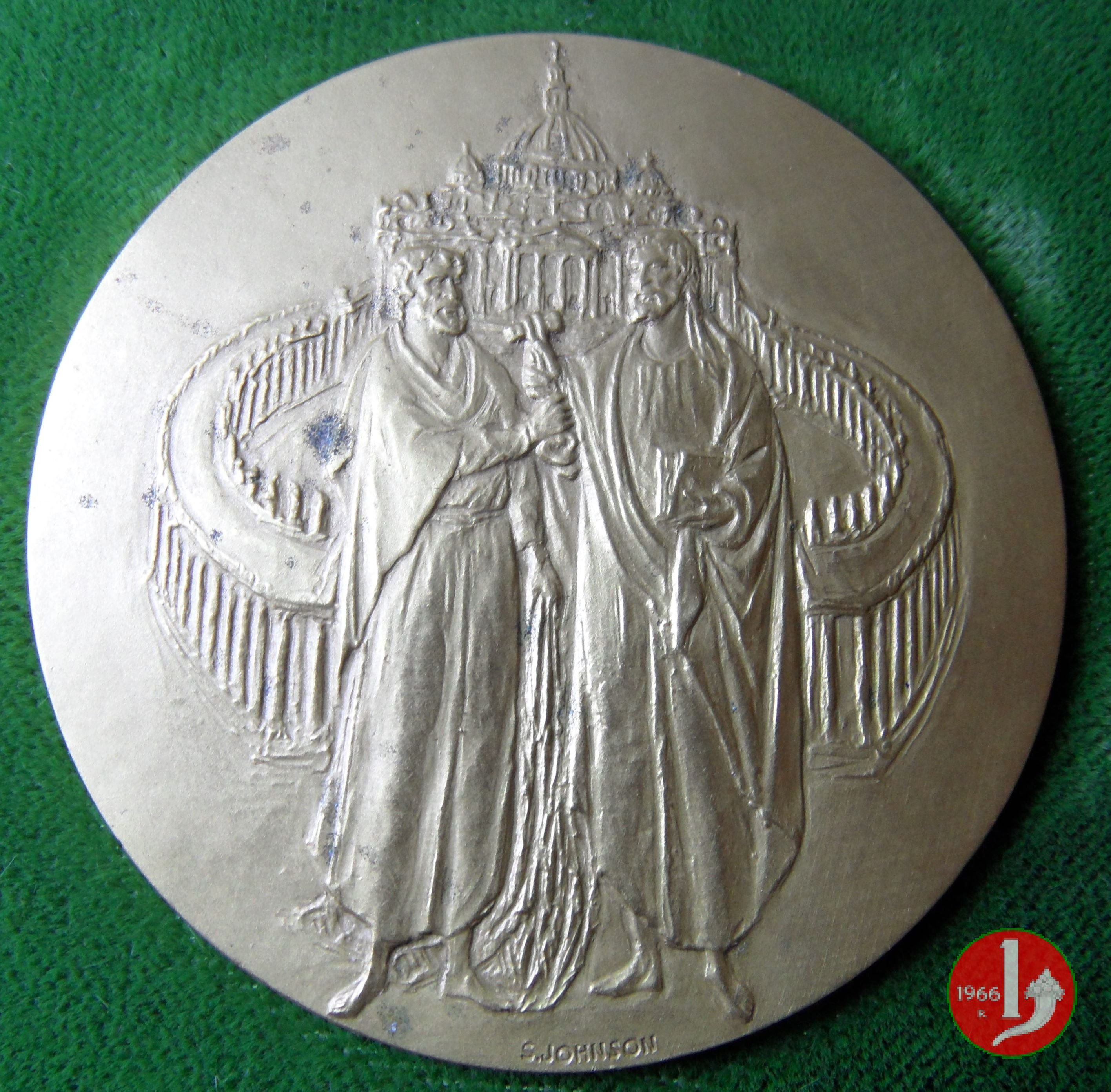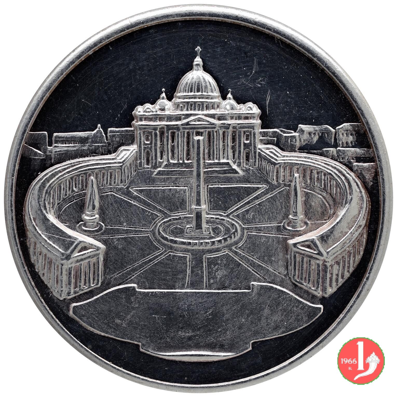 Verso: Cristo in piedi, consegna le chiavi a S. Pietro , davanti alla Piazza e alla Basilica Vaticana