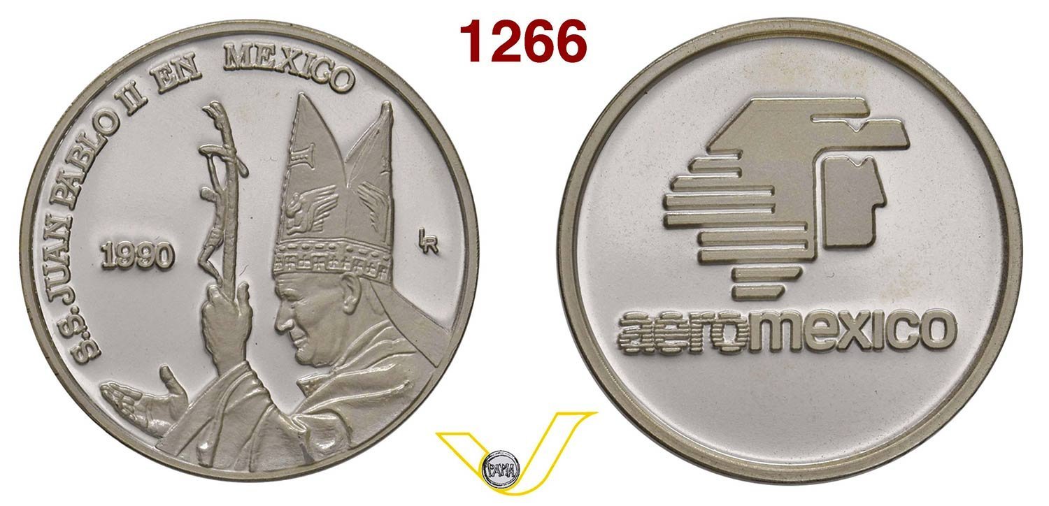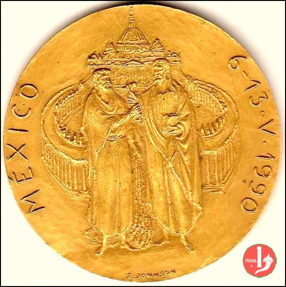 Visita in Messico 06-05-1990 Dritto: • IOANNES PAULUS II PONT. MAX busto benedicente di 3/4 a dx con berretto e cappa Gesú consegna le chiavi a S. Pietro davanti a Piazza San Pietro sotto: S. JOHNSON | |
