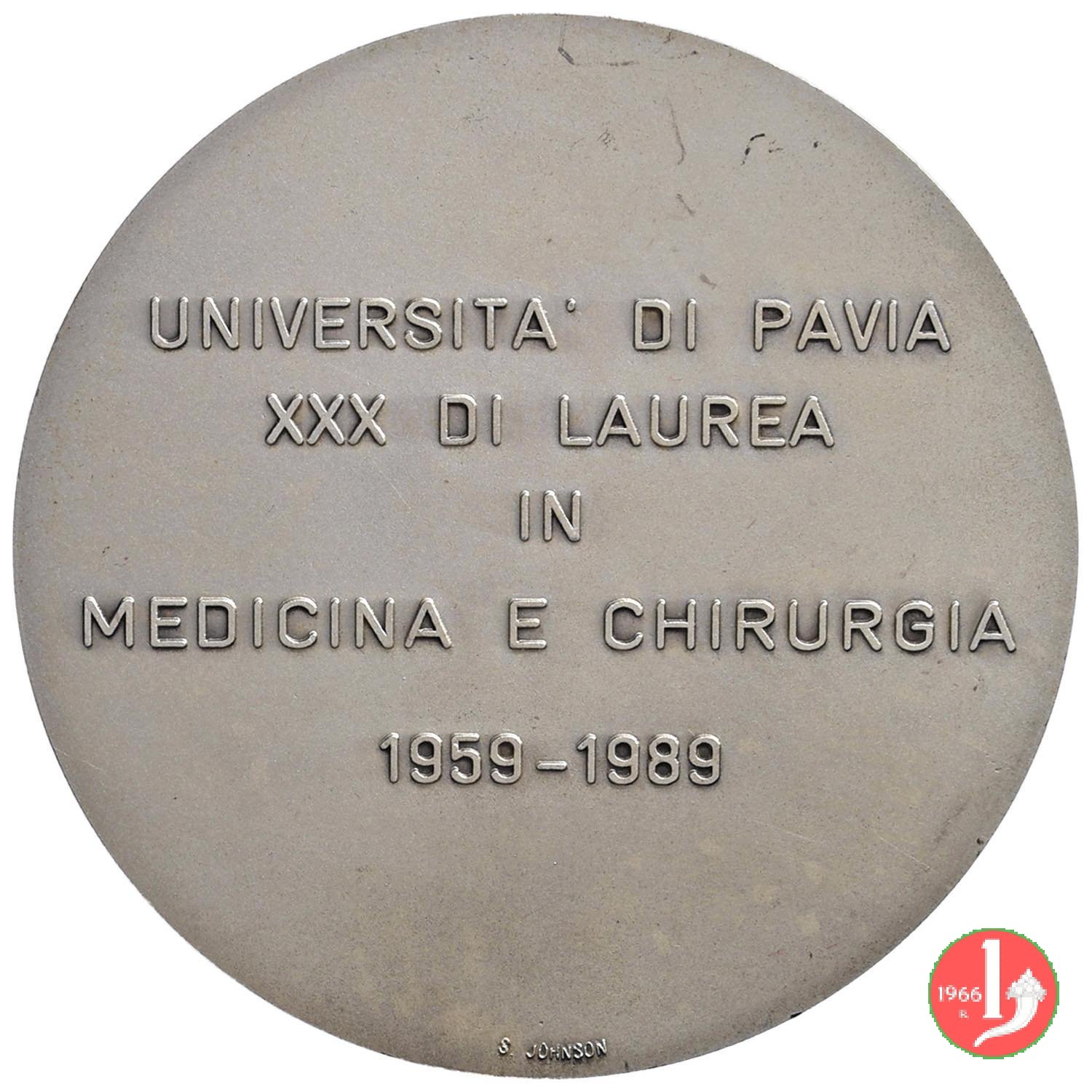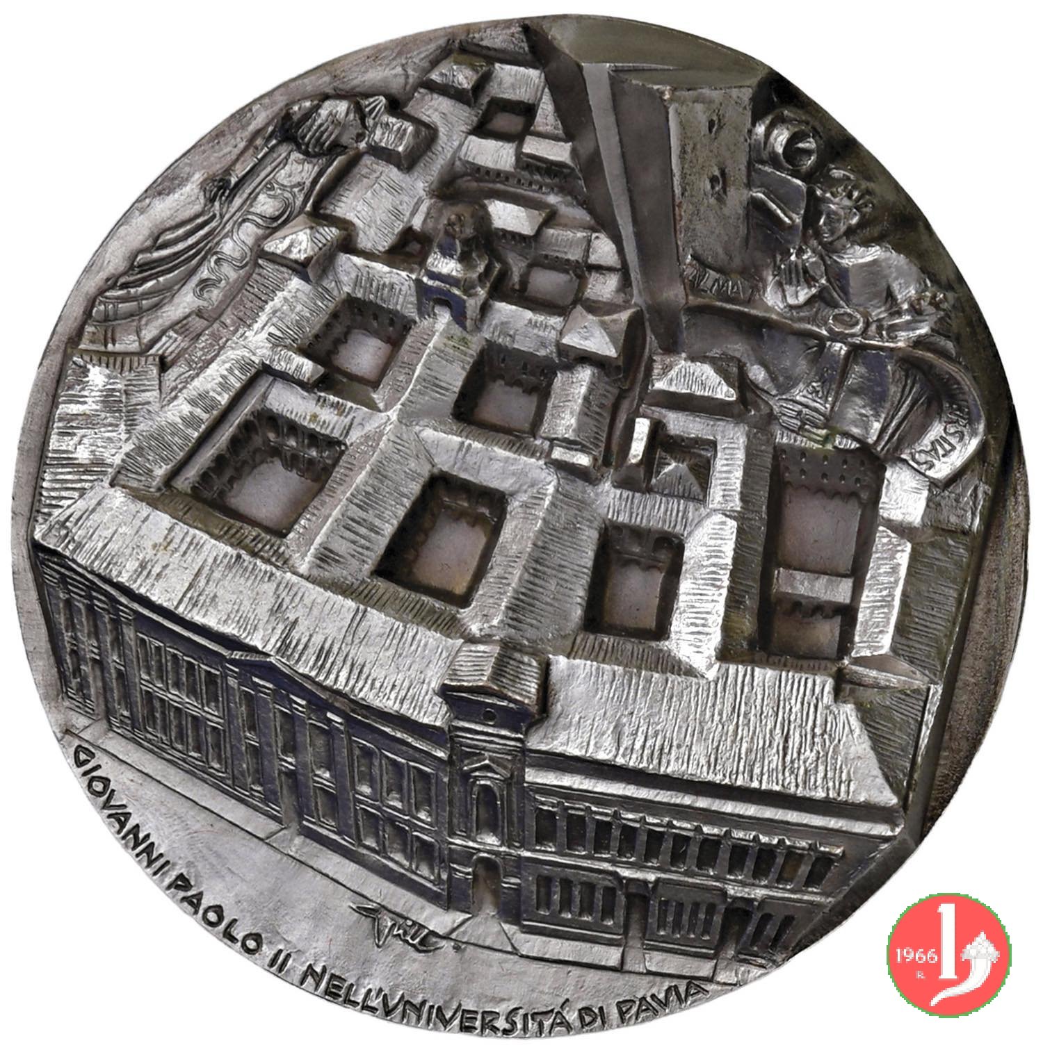 5° Anniversario Visita Università di Pavia 1989 Dritto: circolarmente in basso: GIOVANNI PAOLO II NELL' UNIVERSITA' DI PAVIA Vista aerea della sede dell'Università di Pavia sotto: Grilli in basso: S. JOHNSON | |