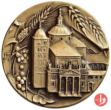 Consacrazione Chiesa Giovanni Maria Vianney in Roma 1990 Dritto: S. GIOVANNI _ MARIA VIANNEY busto a sx del Santo orante con mozzetta e stola sotto: E. L. FRAPICCINI prospetto anteriore della nuova Chiesa In esergo: ANNO DEL SIGNORE= 1990 = logo |