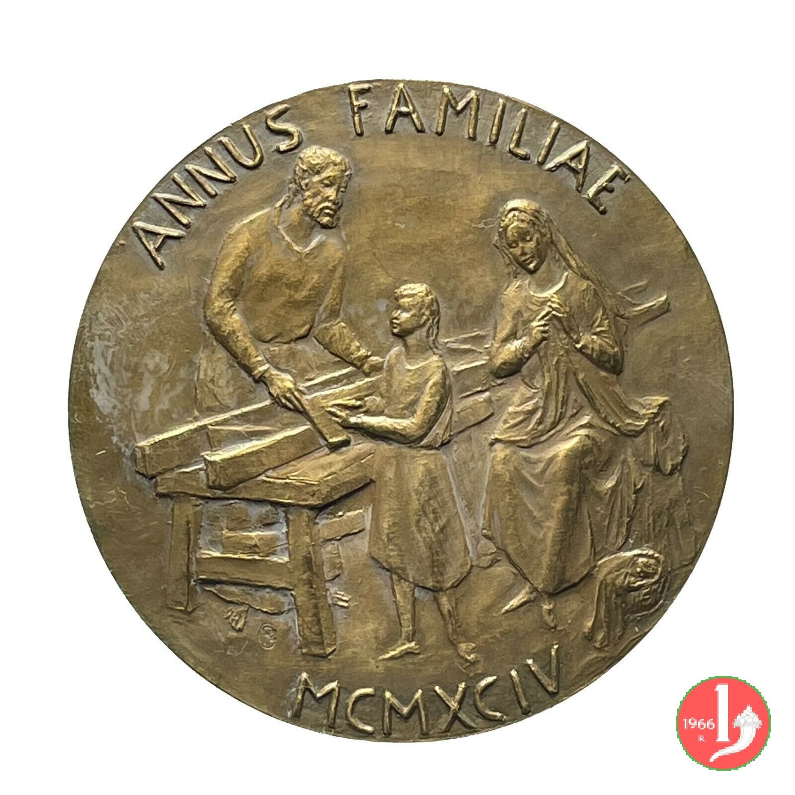 A. XVI -Anno della famiglia Dritto: IOANNES PAULUS II PONTIFEX MAXIMUS AN • XVI busto con berretto, mozzetta e stola a dx sotto: E • MANFRINI La Sacra Famiglia davanti ad un tavolo sotto: MCMXCIV a sx: IPZS (incuso) | |