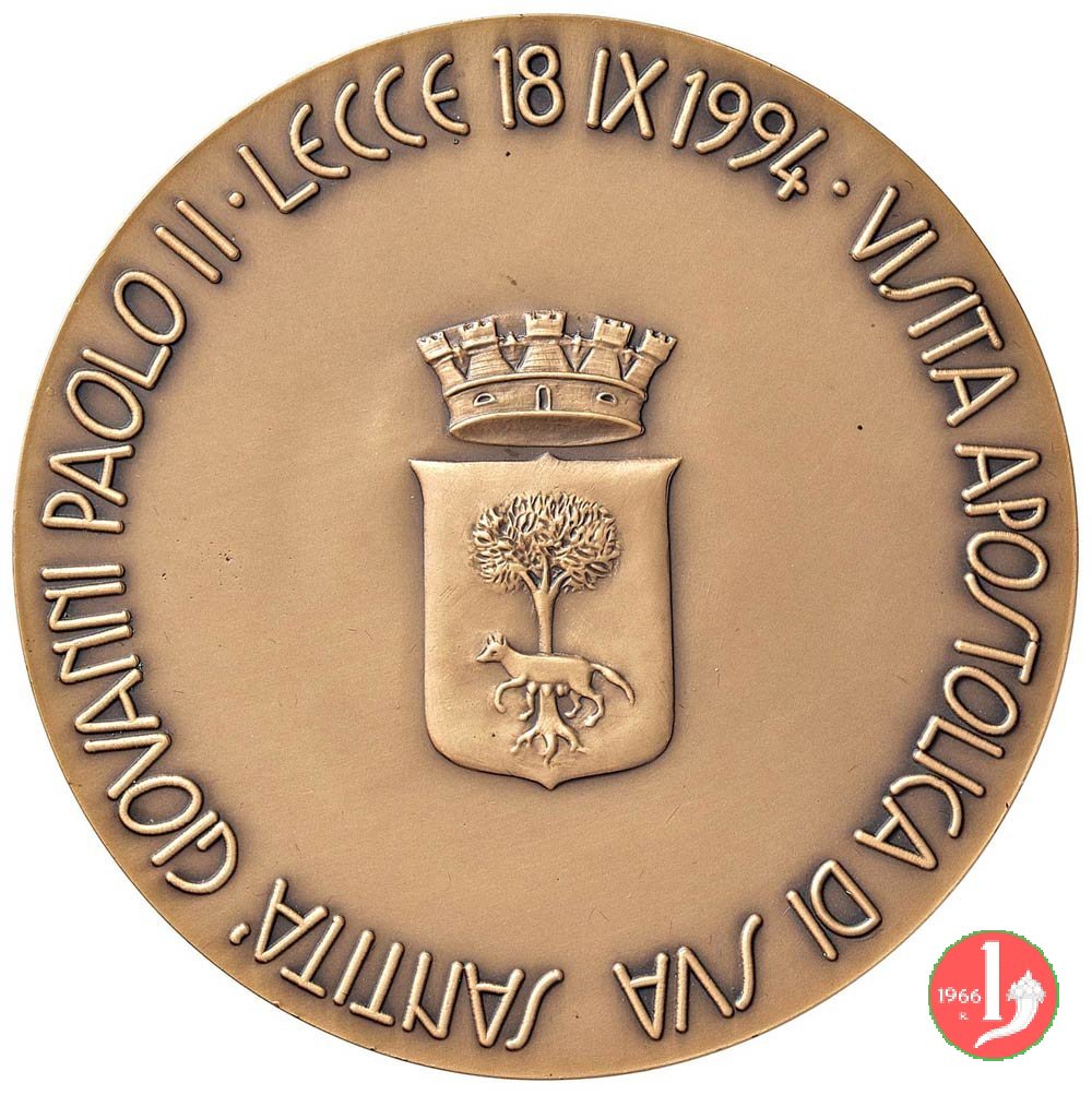Visita a Lecce 18-09-1994 Dritto: IOANNES PAVLVS II PONT. MAX. busto a sx con berretto, veste talare e Croce pettorale in basso: P. MONASSI | |