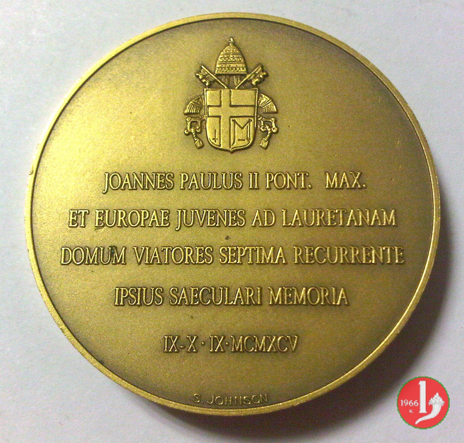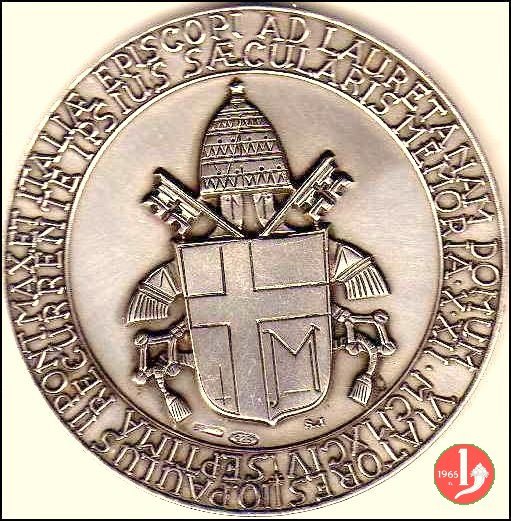 Verso: IO. PAULUS II PONT. MAX. ET ITALIAE EPISCOPI AD LAURETANAM COMUS VIATORES ✠ = SEPTIMA RECURRENTE IPSIUS SAECULARIS MEMORIA • X • XII • MCMXCIV