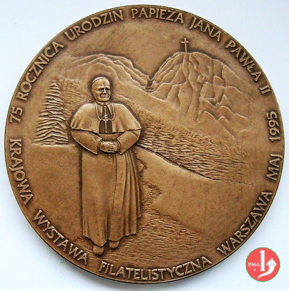 Dritto: 75 ROCZNICA URODZIN PAPIEZA JANA PAWLA II = KRAJOWA WYSTAWA FILATELISTYCZNA WARSZAWA MAI 1995