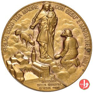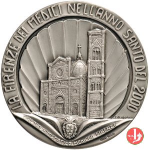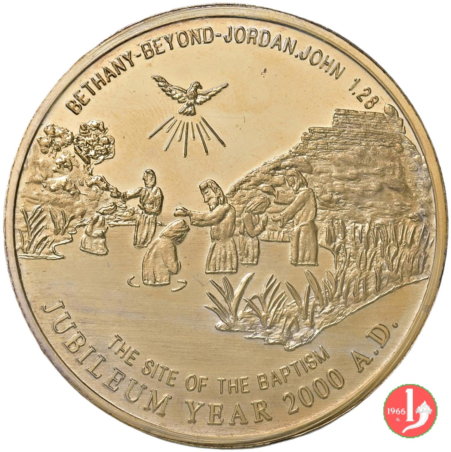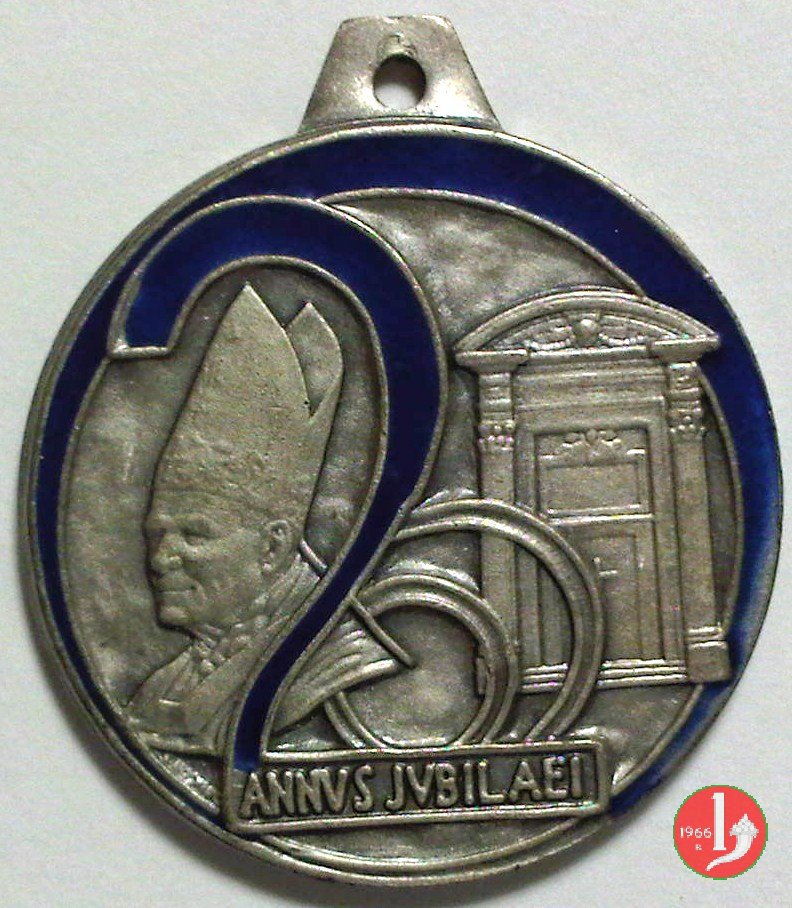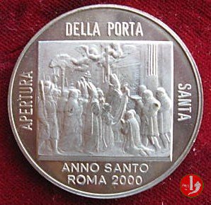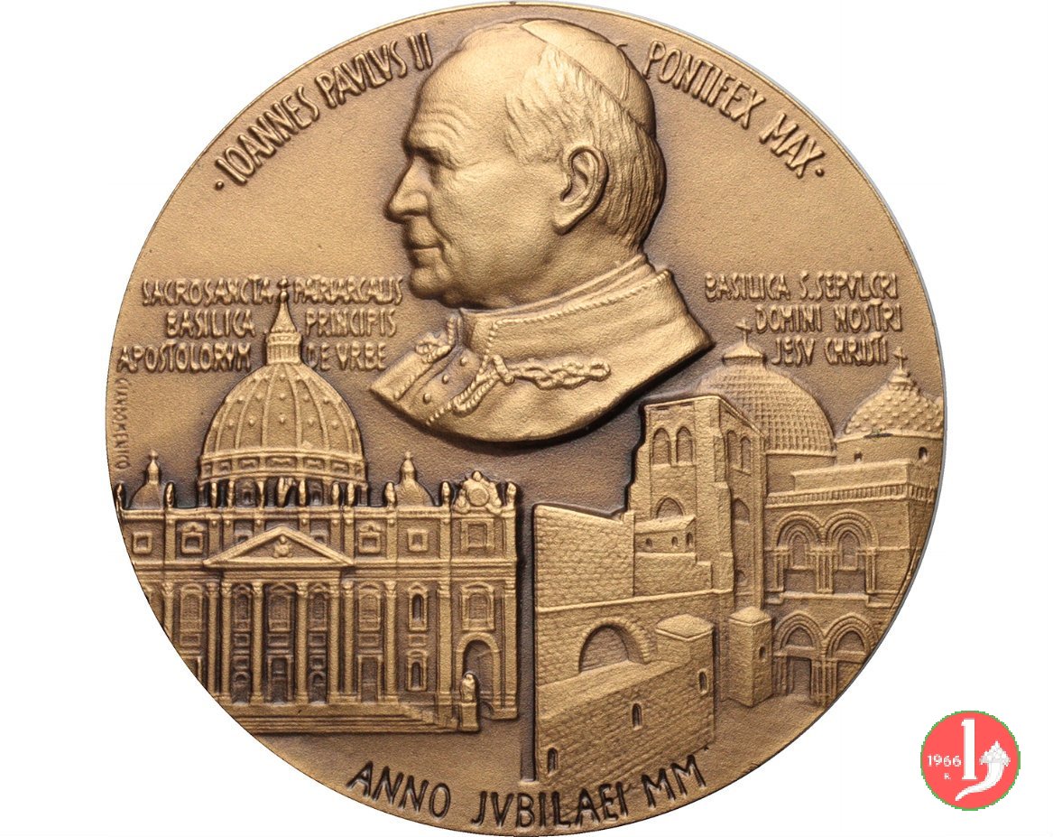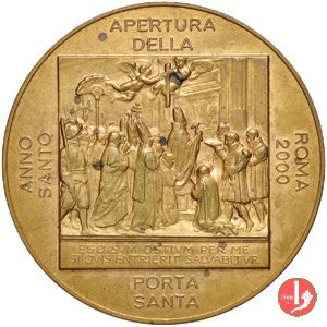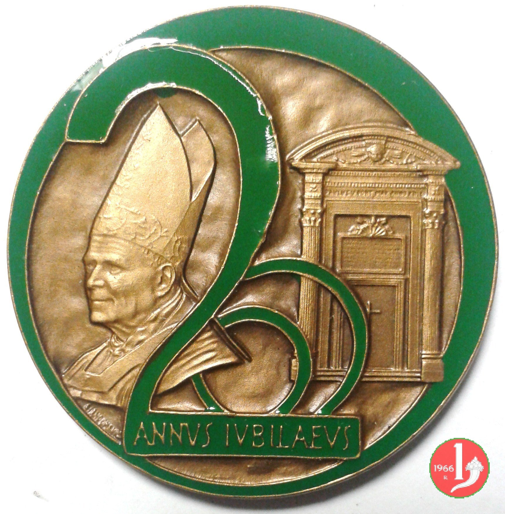 Dritto: Nel cerchio gli stemmi dei ventisei papi che hanno aperto la Porta Santa e sotto croce, nel cerchio interno: IOANNES PAVLVS II PONT. MAX. = • ANNO IVBILAEI MM •