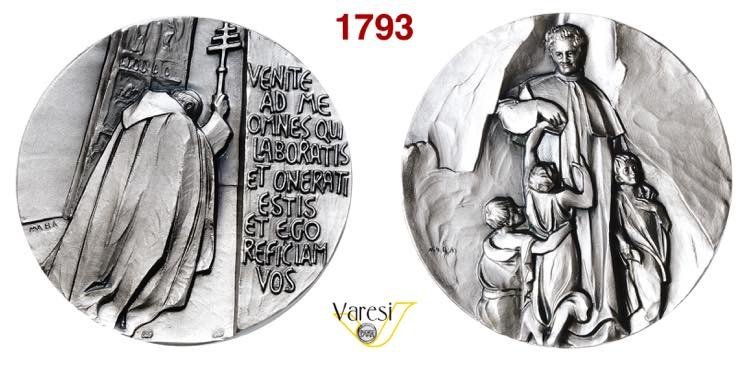 Stemma papale su chiavi decussate e coronato da triregno (nell'argento sotto lo stemma il N° dell'esemplare)