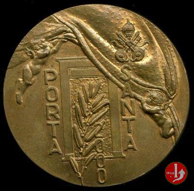Verso: Il Papa assistito dalla Corte apre la Porta Santa verso sx, in alto Cristo risorto tra due Angeli