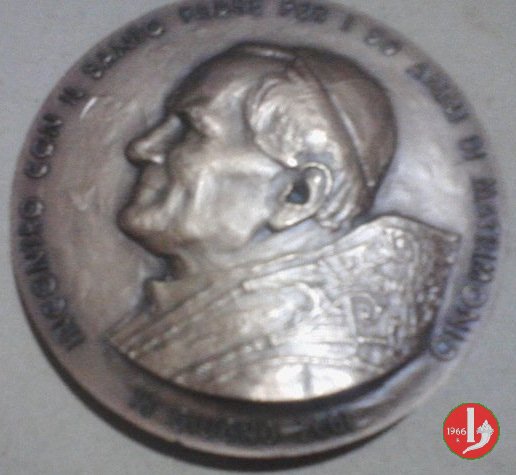 Dritto: Il Papa in piedi di 3/4 a dx con mitra, pianeta e pallio a braccia alzate, sullo sfondo occhio Divino entro triangolo raggiante su Crocefisso