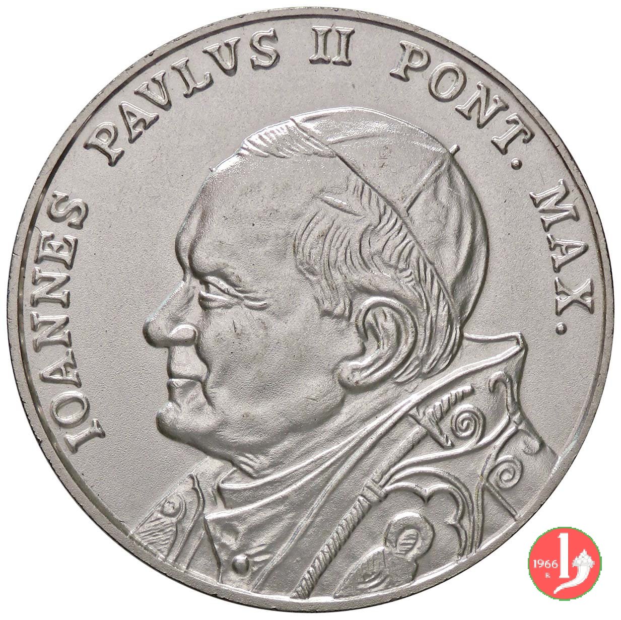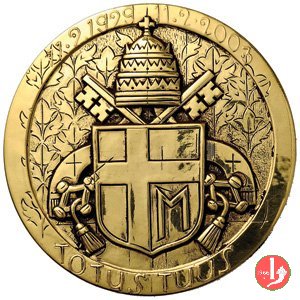 A. XXVI -Radici Cristiane dell'Europa Dritto: IOANNES PAVLVS PP. II = ANNO XXVI PONTIFICATUS busto orante a Dx con berretto e pallio incuso a dx: IPZS davanti alle mani: U.PERNAZZA campo diviso in quattro da croce, tra i bracci viste assonometriche di Cattedrali e Basiliche: Santo Sepolcro a Gerusalemme, San Pietro a Roma, Canterbury, Augsburg | |