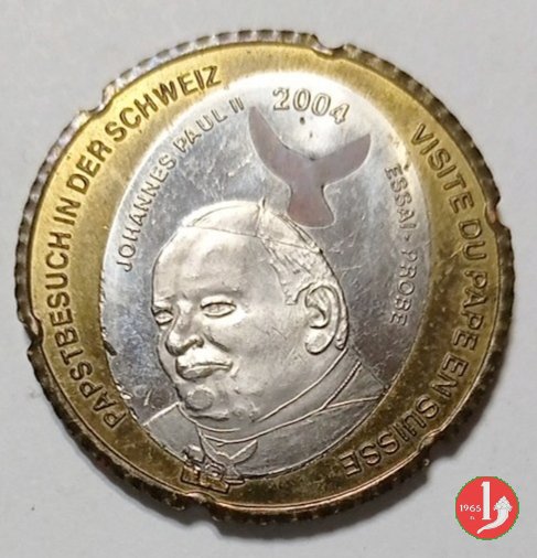 Visita in Svizzera a Berna 05-06-2004 Dritto: PAPSTBESUCH IN DER SCHWEIZ _ VISITE DU PAPE EN SUISSE entro ovale: JOHANNES PAUL II _ 2004 _ ESSAI - PROBE busto di 3/4 a sx con abito talare | |