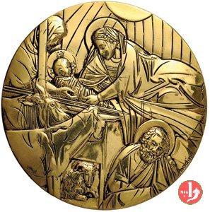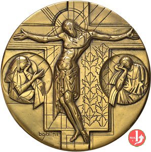 75° Città del Vaticano-Omaggio a Cimabue 60mm Dritto: Cristo raggiante in croce tra due medaglie con i busti della B. V. Maria e di San Giovanni, tratto da Cimabue in basso, a sx: BODINI Stemma papale con triregno e chiavi in basso a sx | |