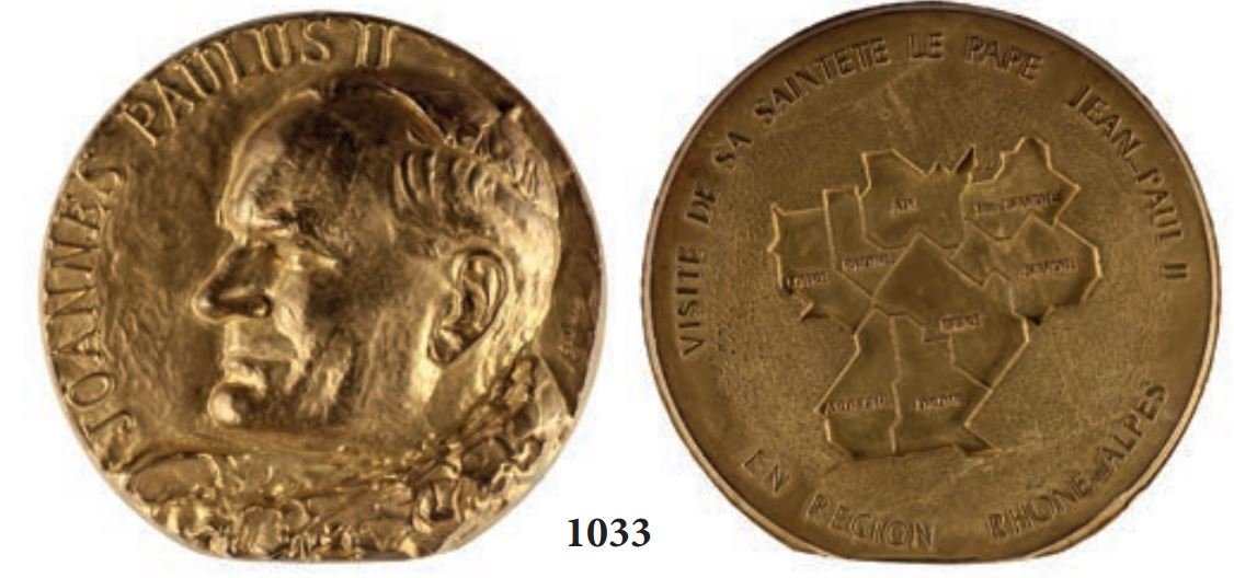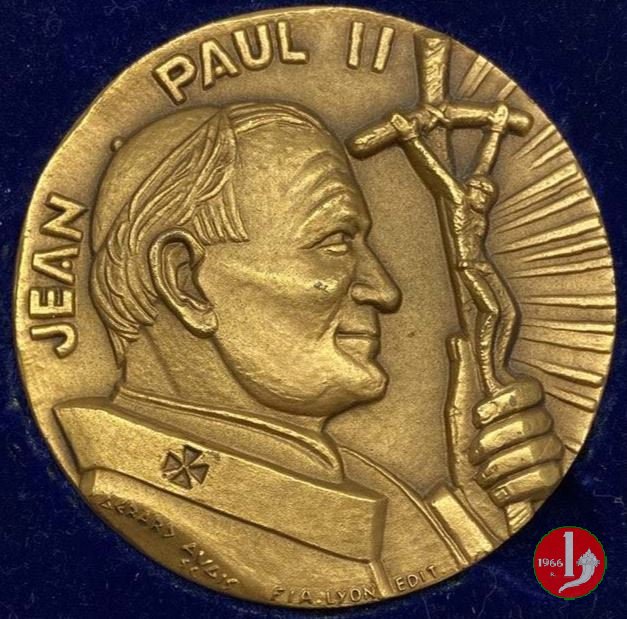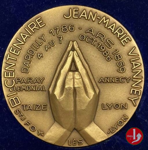 Visita in Francia-200° J.M. Vianney 04-10-1986 Dritto: JEAN _ PAUL II busto a dx con zucchetto, pastorale raggiante e pallio sul busto, in basso: FIA. LYON _ EDIT. sul taglio spalla: GERARD AVAIS SC. in alto: DARDILLY 1786-ARS 1859 = 4 AUT 7 _ OCT. 1986 mani giunte ai lati: PARAY = LE MONIAL = TAIZE _ ANNECY = LYON in basso: S TE FOY _ LES _ -LYON | |