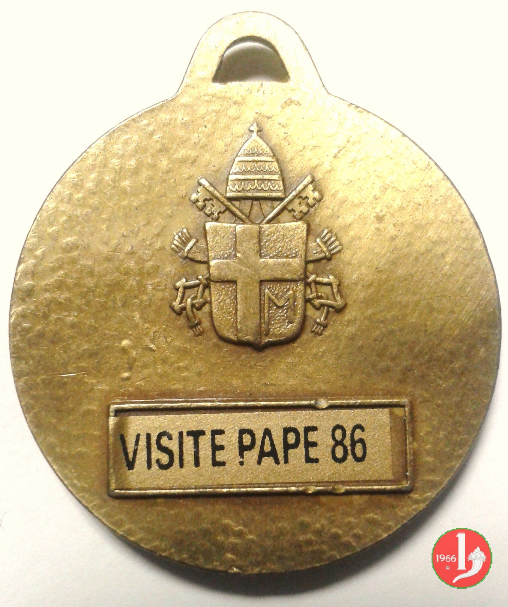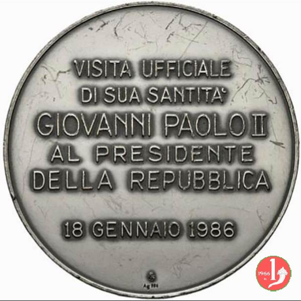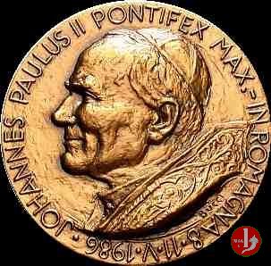 Visita a Brisighella 10-05-1986 Dritto: IOANNES PAVLVS II PONT. MAX A. IV Busto a dx con berretto e abito talare sotto: GUIDO ANGELINI Vista della Città e Stemma di Brisighella a dx sotto: ANGELCOIN | |