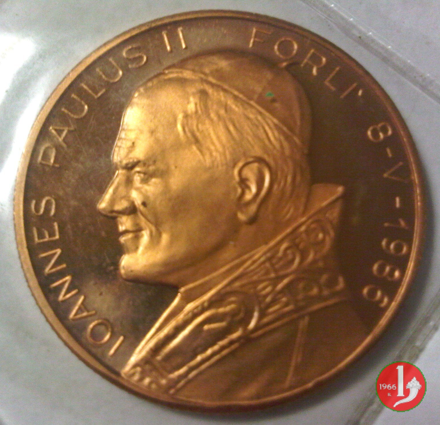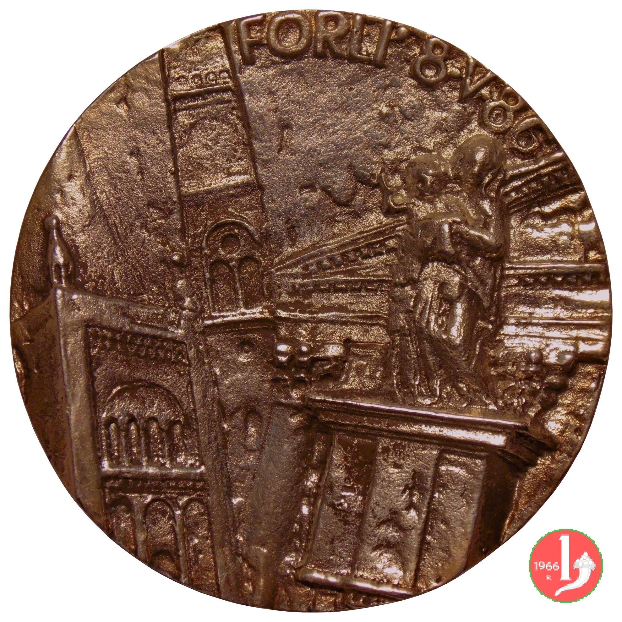 Visita a Forlí 08-05-1986 Dritto: IOANNES PAULUS II PONT MAX testa a dx in basso a dx: F. BOMBARDI Composizione di Monumenti della Città di Forlí | |