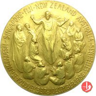 Bangladesh-Singapore-Oceania 19-11-86 Dritto: IOANNES PAVLVS PP. II Busto di 3/4 a sx con mitra, pianeta, pallio e pastorale in basso, a dx: E. MANFRINI Gesú appare agli Apostoli in basso, a dx: E. MANFRINI | |