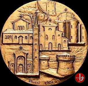 Visita in Romagna 08-05-1986 Dritto: JOANNES PAVLVS II PONTIFEX MAX. - IN ROMAGNA 8 • 11 • V • 1986 • busto a sx con berretto sotto: BUCCI sotto: BUCCI 1986 | |