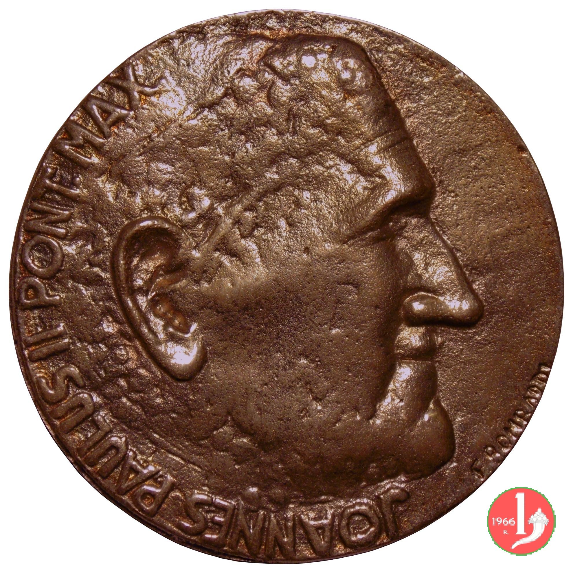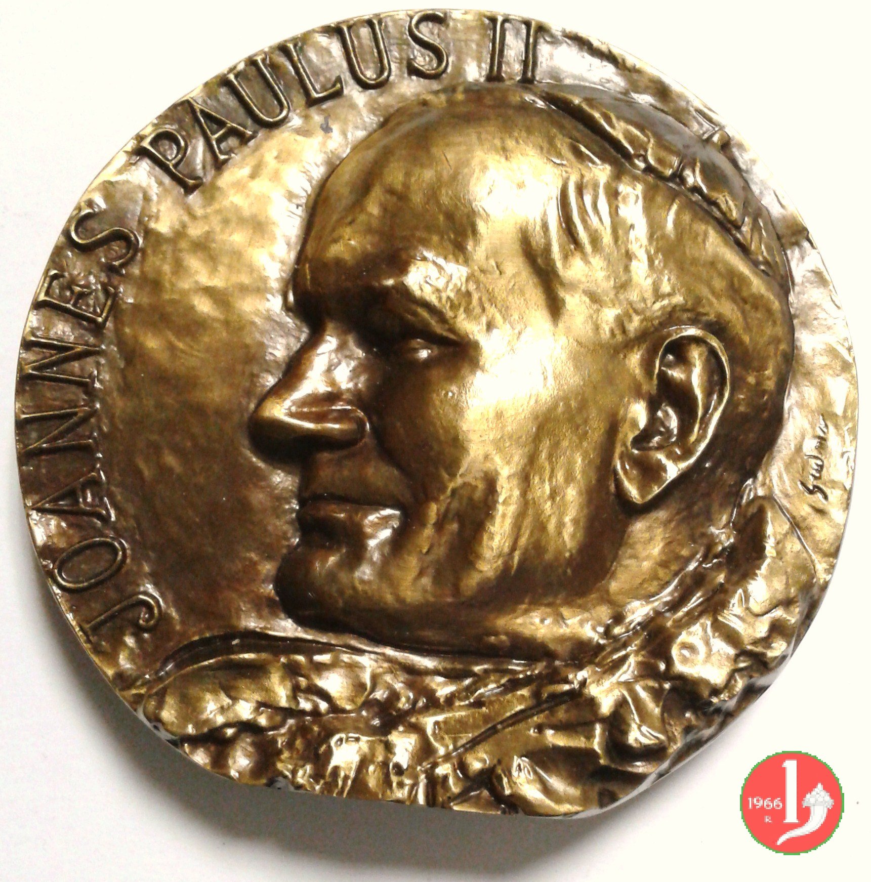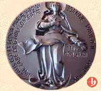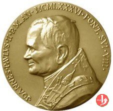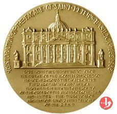 Restauro Facciata Basilica di S. Pietro Dritto: • JOANNES • PAVLVS • II • P.M. AN • MCMXXXVI • PONT • SVI • VIII • busro a sx con berretto e stola con insegne Papali sulla spalla: A SPERANDIO Il Prospetto anteriore della Basilica Vaticana in esergo: POPE JOHN PAUL II WISHING TO HONOR THE PRINCE OF THE APOSTLES RESTORED TO ITS FORMER GLORY THE FAÇADE OF THE PATRIARCHAL VATICAN BASILICA THROUGH THE MUNIFICENT GENEROSITY OF THE ORDER OF THE KNIGHTS OF COLUMBUS AND UNDER THE DIRECTION OF ARCHBISHOP LINO ZANINI DELIGATE OF THE R • F. S. P. | |