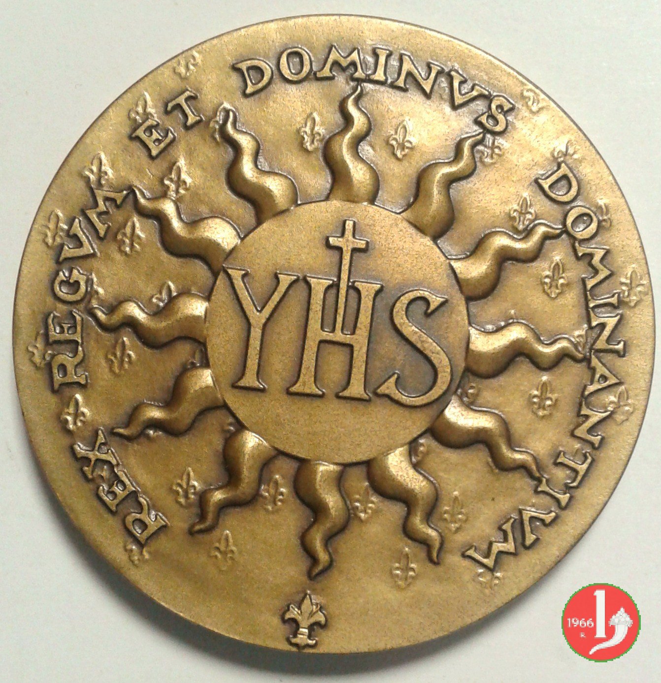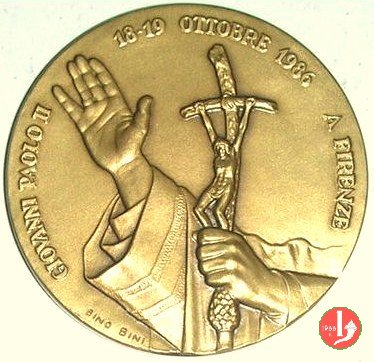 Visita a Firenze 18-10-1986 Dritto: GIOVANNI PAOLO II _ 18-19 OTTOBRE 1986 A FIRENZE pastorale e mano benedicente a sx in basso: BINO BINI ostia IHS raggiante in campo di gigli sotto: giglio Fiorentino | |