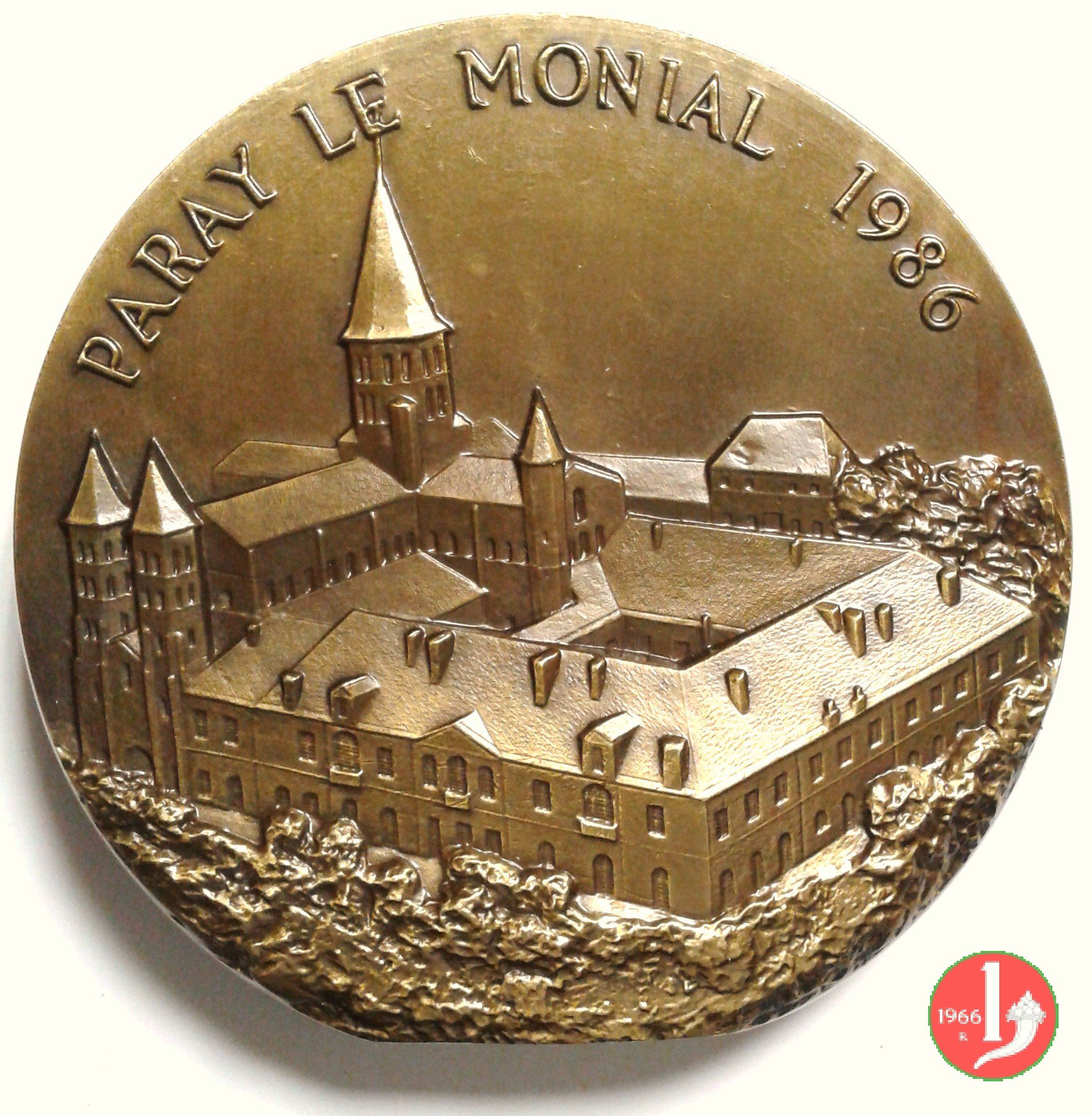 Visita in Francia - Paray le Monial 05-10-1986 Dritto: JOANNES PAULUS II busto a Sx con berretto nel campo a dx, corsivo: GUDMAR Vista del Monastero di Paray le Monial | |