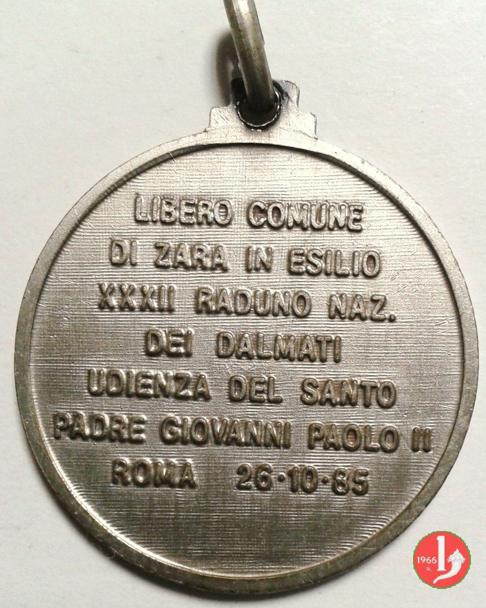Raduno Dalmati - Udienza 28-10-1985 Dritto: S.S. GIOVANNI PAOLO II busto a sx con berretto, mozzetta e stola | |