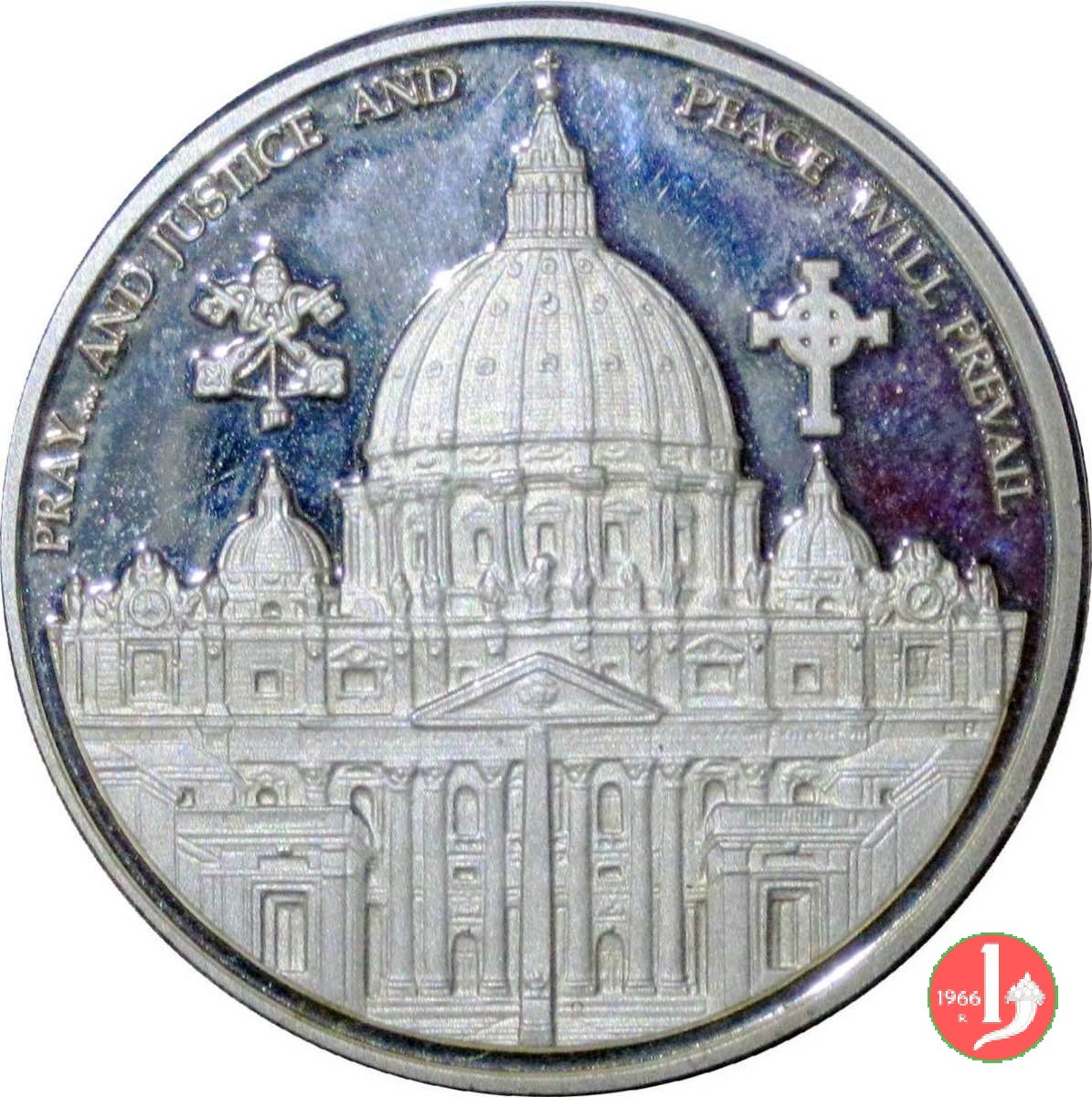 In Loving Memory Dritto: POPE JOHN PAUL II busto di 3/4 a sx con berretto e veste talare ai lati: 1920 _ 2005 sotto: IB in basso: IN LOVING MEMORY prospetto anteriore della Basilica Vaticana tra chiavi decussate sormontate da triregno e Crocefisso | |