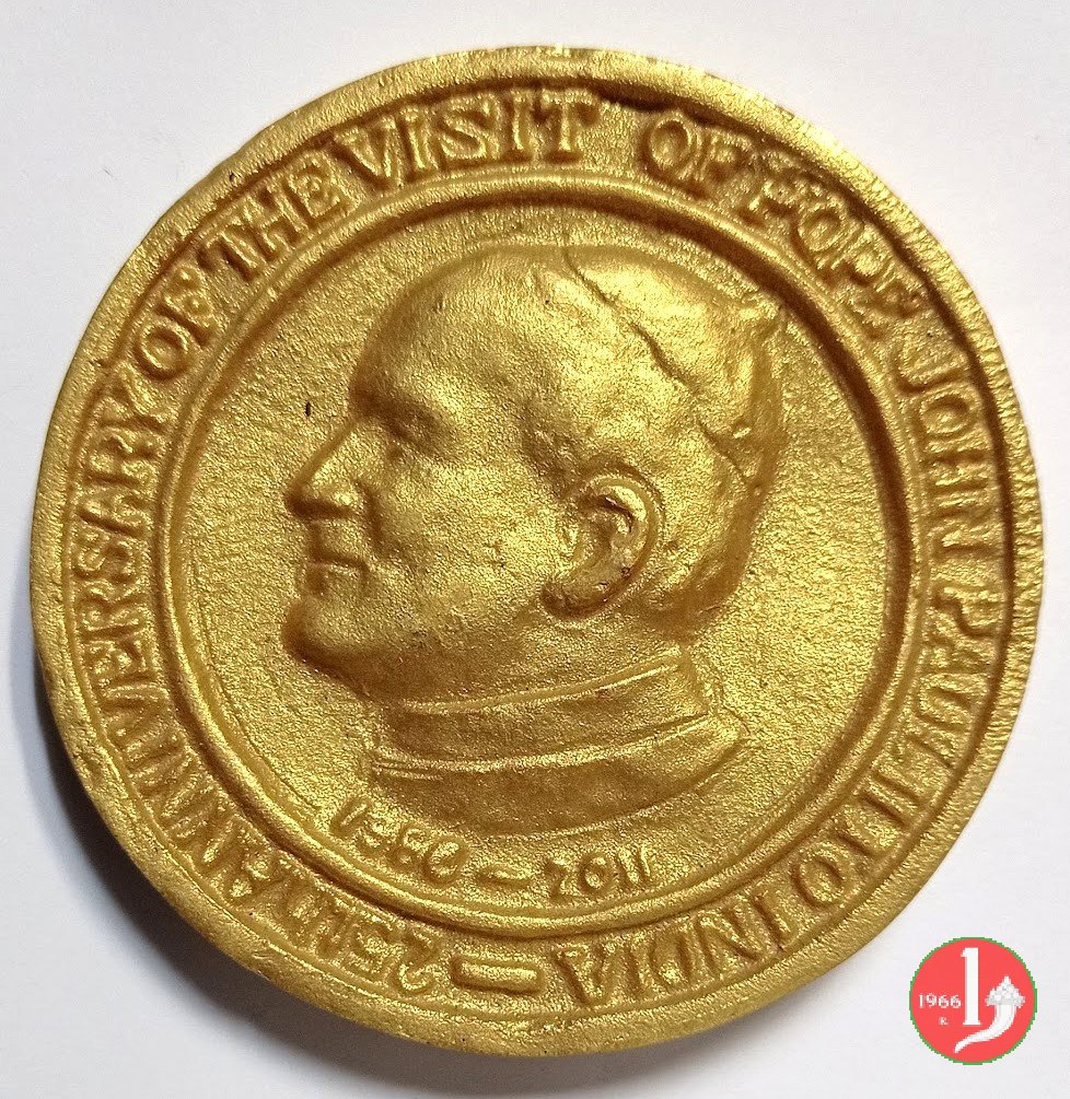 25° Anniversario della Visita in India 2011 Dritto: 25 Lh ANNIVERSARY OF THE VISIT OF POPE JOHN PAUL II TO INDIA - busto a sx con zucchetto e abito talare sotto 1986 - 2011 nel campo entro cornice circolare: POPE JOHN PAUL II | |