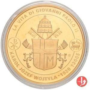 Episcopus Romanus Dritto: EPISCOPVS = ✠ ✠ ✠ ROMANVS ✠ ✠ ✠ in alto circolarmente nel riporto fotografico interno: IOANNES PAVLVS II P. M. 16.X.1978 - 2.IV. 2005 busto di fronte con zucchetto, abito talare Croce pettorale e mantellina con la mano sulla tempia sotto: STATVS = VATICANVS |