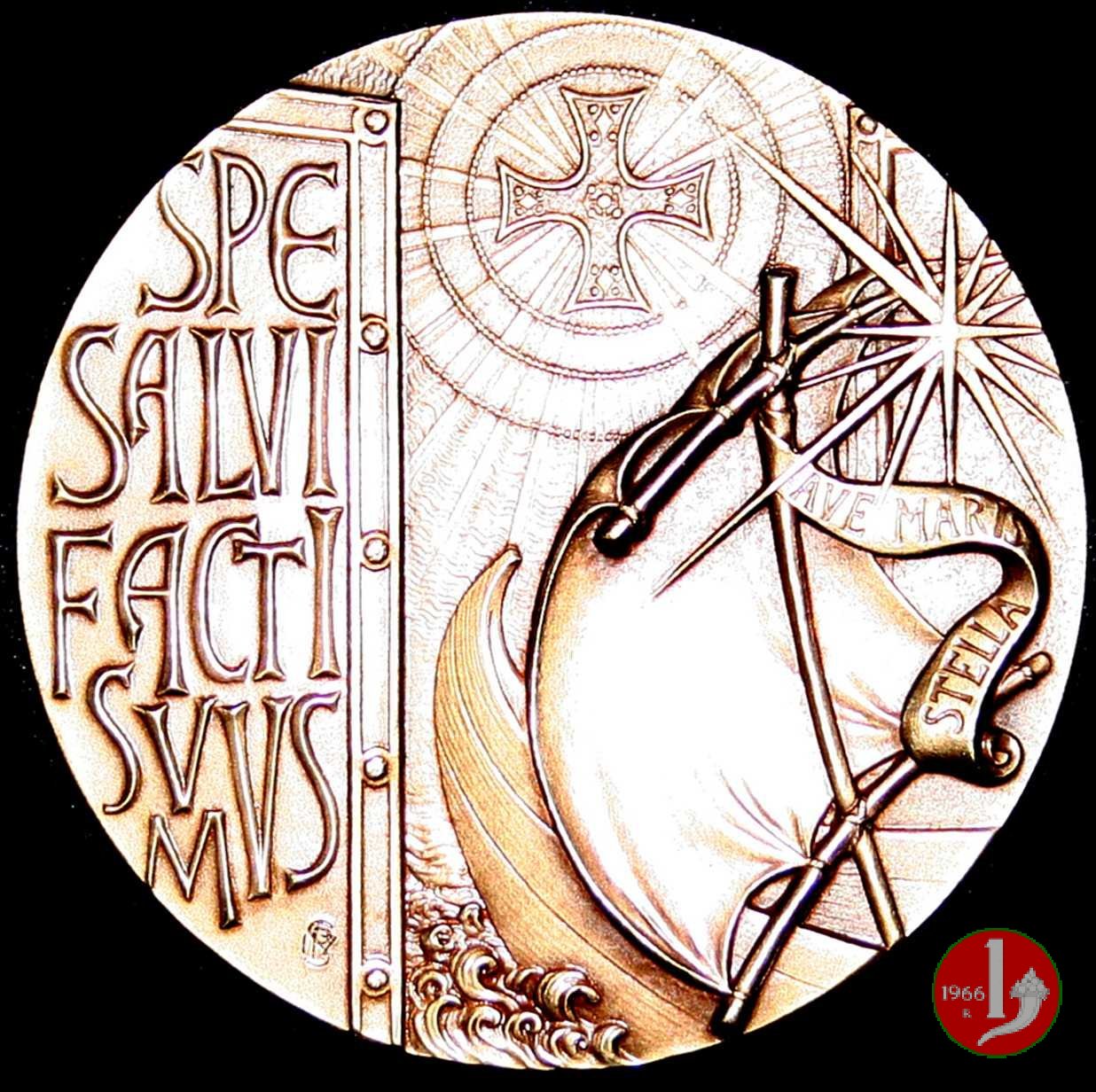 Dritto: entro sei medaglie sul contorno i busti dei Pontefici: PIO XI = 1922-1939 _ PIO XII = 1939-1958 _ GIOVANNI XXIII = 1958-1963 _ PAOLO VI = 1963-1978 _ GIOVANNI PAOLO I = 1978 _ GIOVANNI PAOLO II = 1978-2005