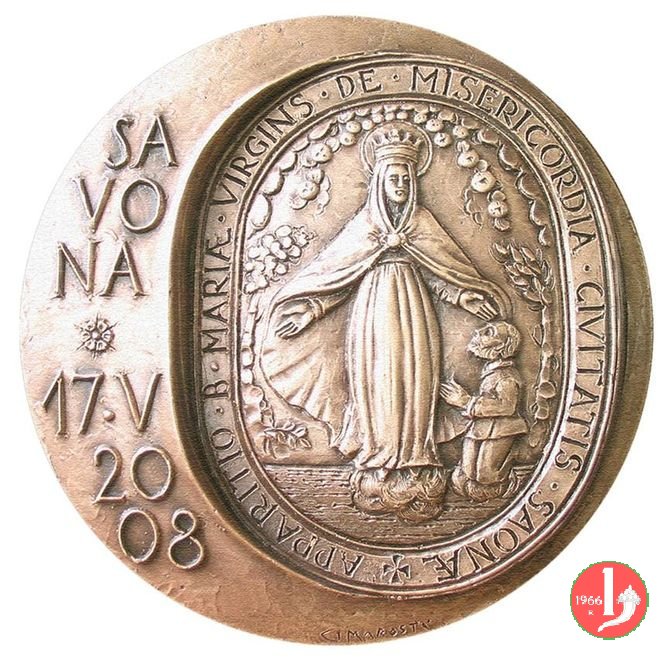 riproduzione di antica medaglia con l'immagine di N. S. della misericordia e genuflesso Antonio Botta