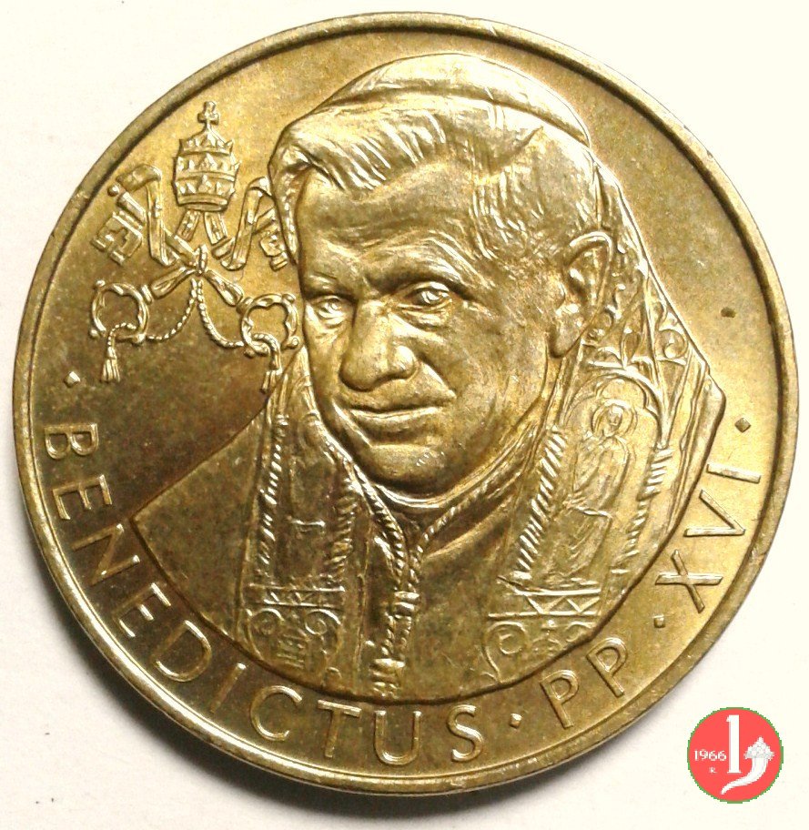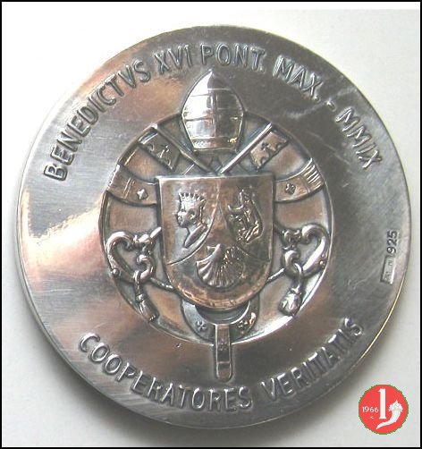 San Giovanni Evangelista Dritto: BENEDICTVS XVI PONT. MAX. MMIX = COOPERATORES VERITATIS Stemma papale sormontato da triregno e chiavi, sotto pallio sulla seduta: GIOVANNI | |